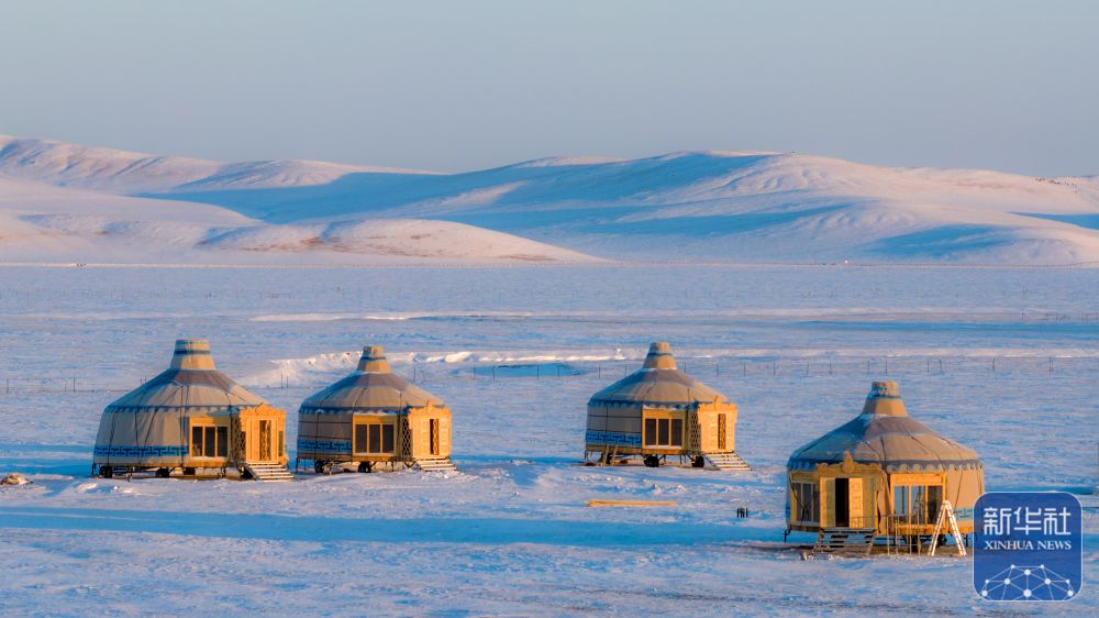 ↑ 这是12月3日在内蒙古呼伦贝尔市陈巴尔虎旗拍摄的雪原上的蒙古包。新华社记者 马金瑞 摄
