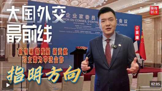 当前,世界百年变局加速演进,人类又一次站在何去何从的十字路口。中法关系如何进一步发展?习近平主席在致辞中提出三个“新”,为中法合作指明方向。一起来看“大国外交最前线”在前方带来的观察。