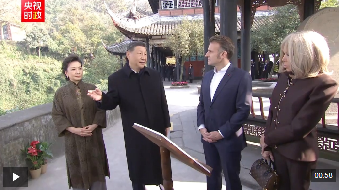 习近平同法国总统马克龙在成都进行友好交流