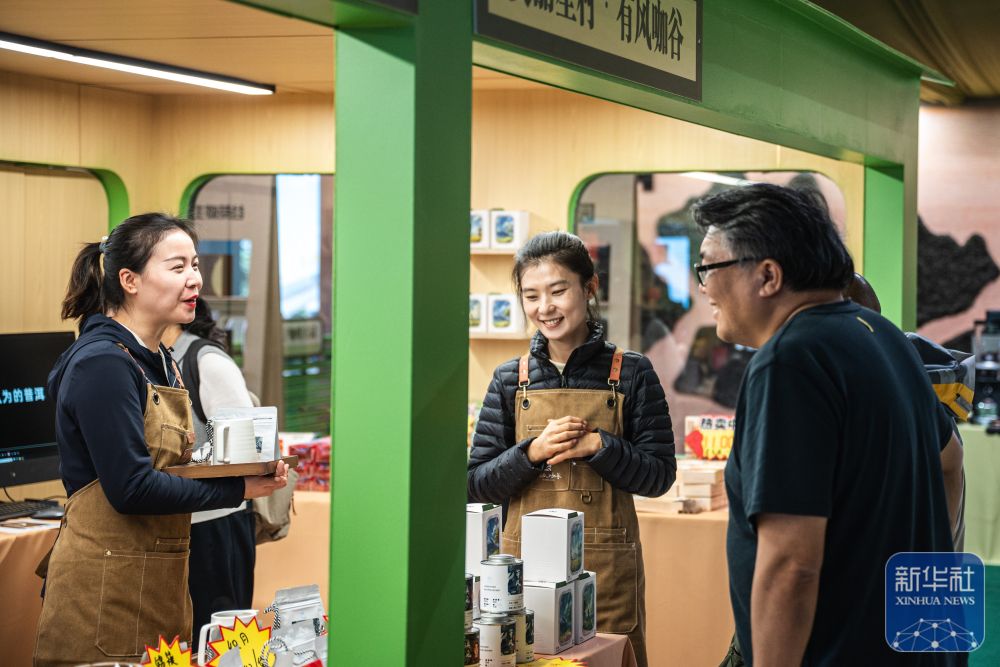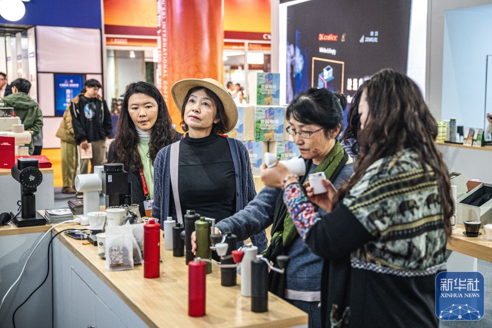 ↑ 12月5日,人们在活动现场查看咖啡产品。