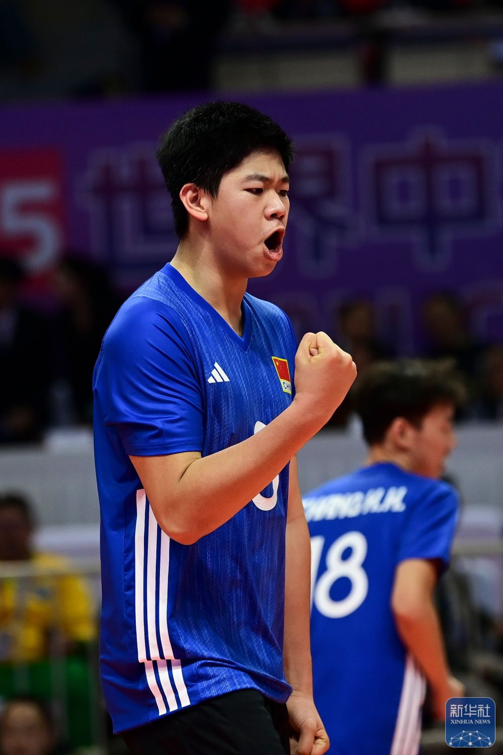↑ 中国男子一队球员陈泽昊在得分后庆祝。