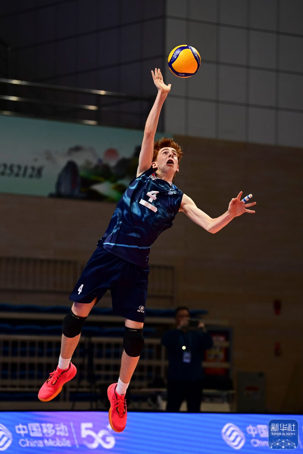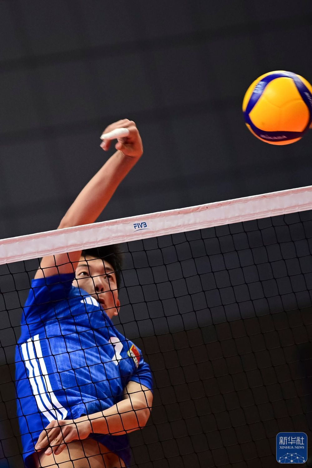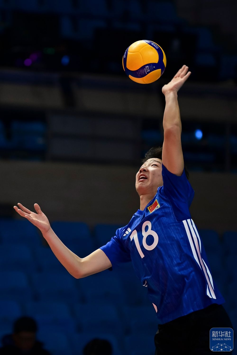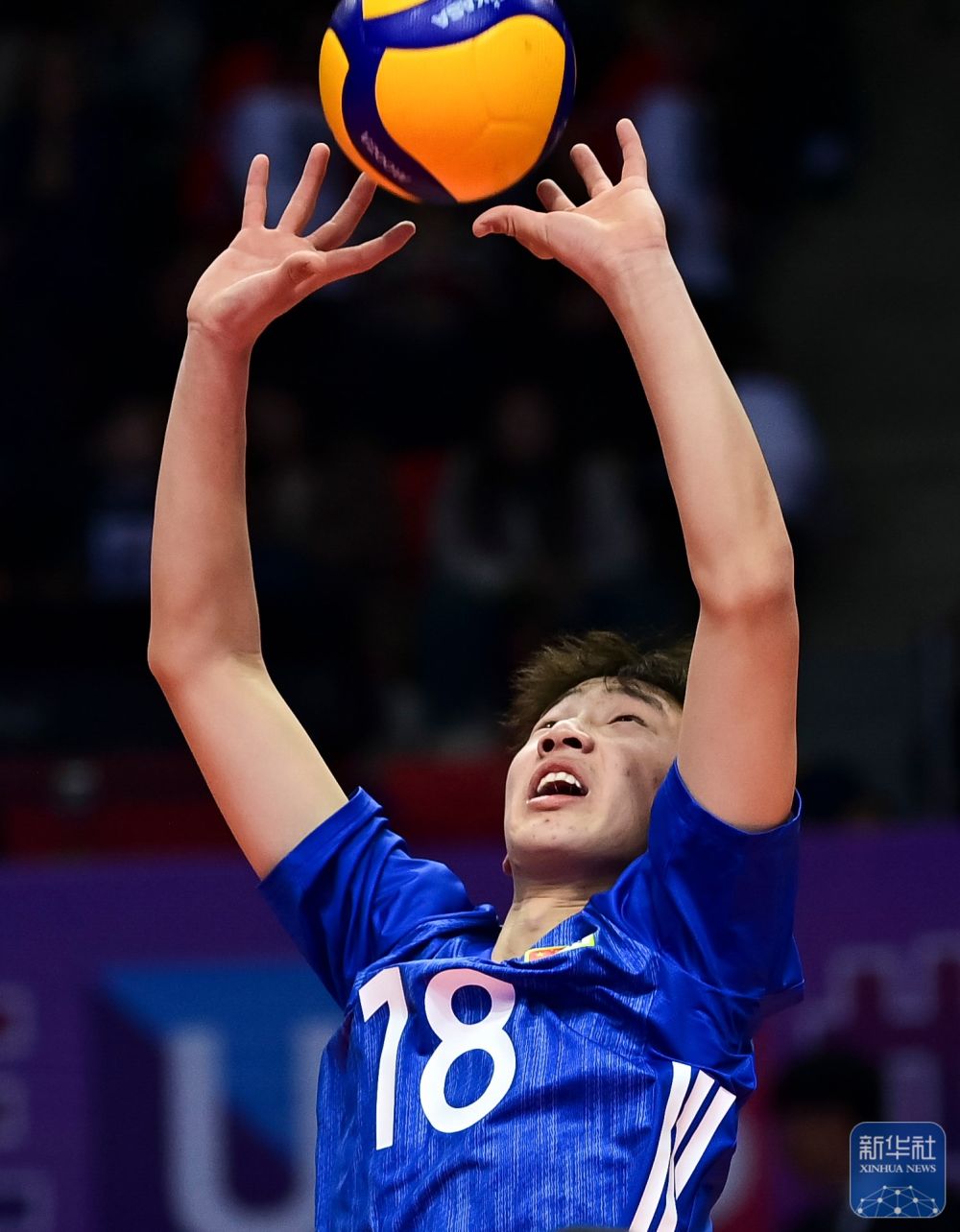 ↑ 中国男子一队球员张洪昊在比赛中传球。
