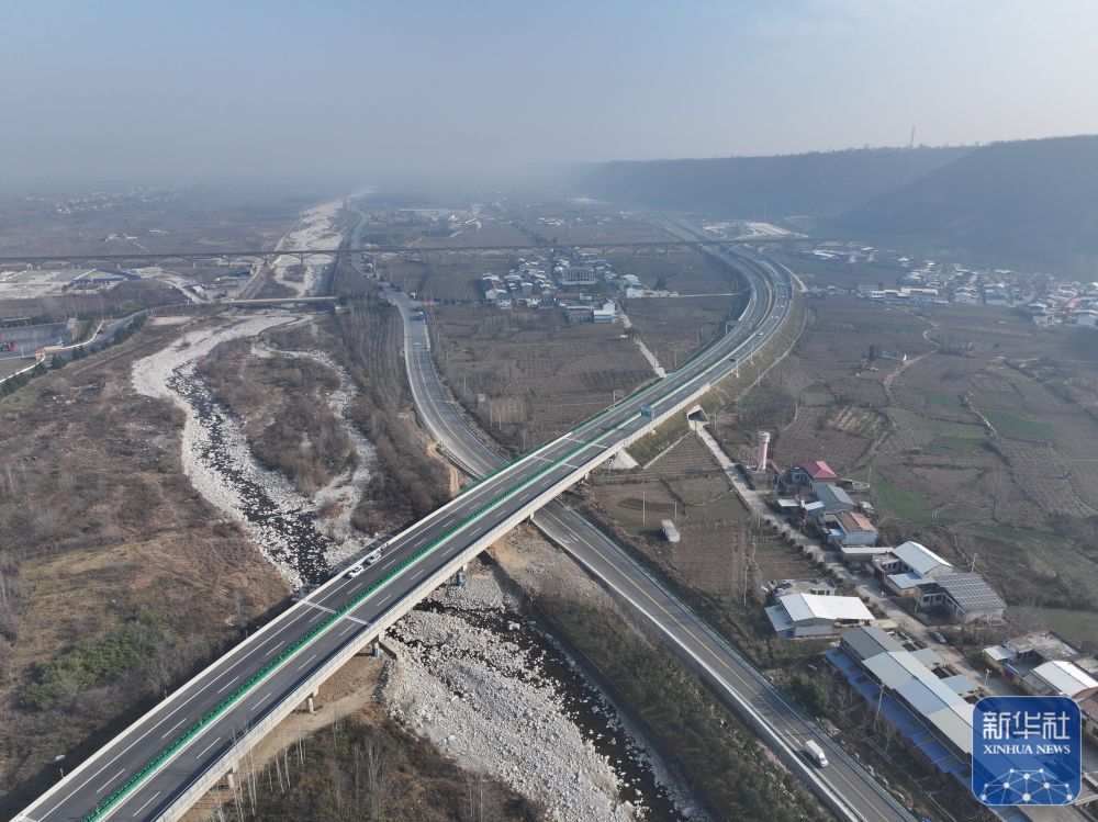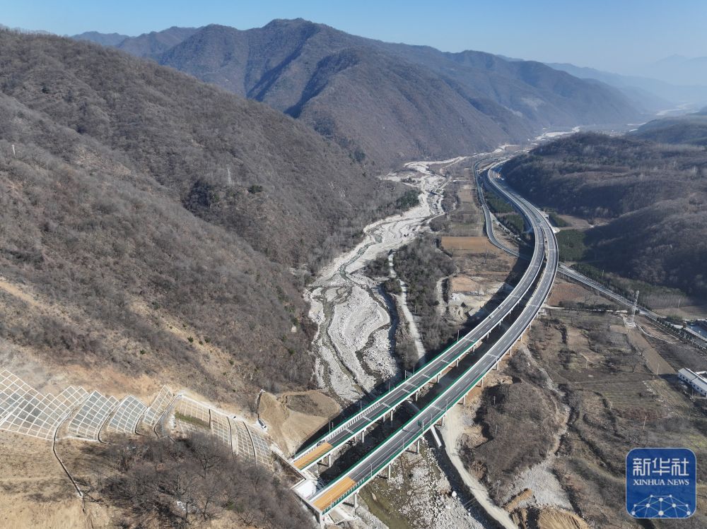 ↑ 位于陕西眉县营头镇境内的眉太高速公路(12月10日摄,无人机照片)。