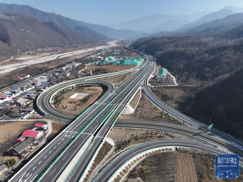 ↑ 这是陕西眉太高速公路桃川互通立交(12月10日摄,无人机照片)。