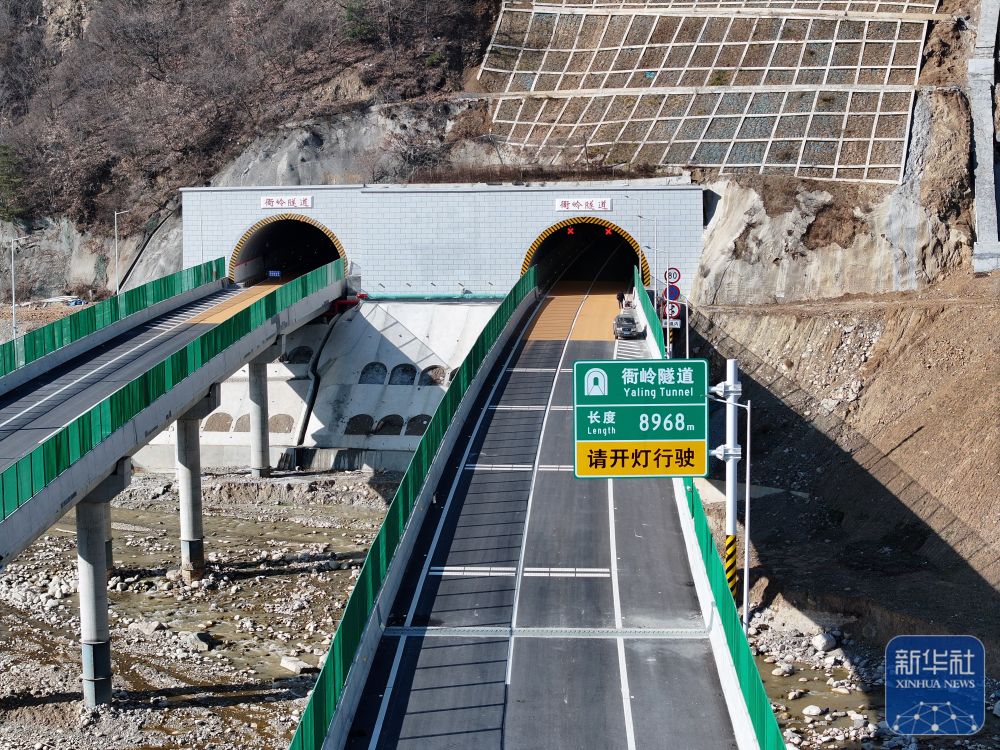 ↑ 全长近9公里的陕西眉太高速公路衙岭隧道(12月10日摄,无人机照片)。