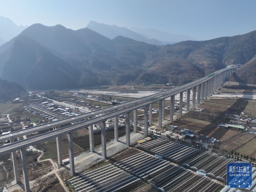 ↑ 位于陕西太白县桃川镇境内的眉太高速公路(12月10日摄,无人机照片)。