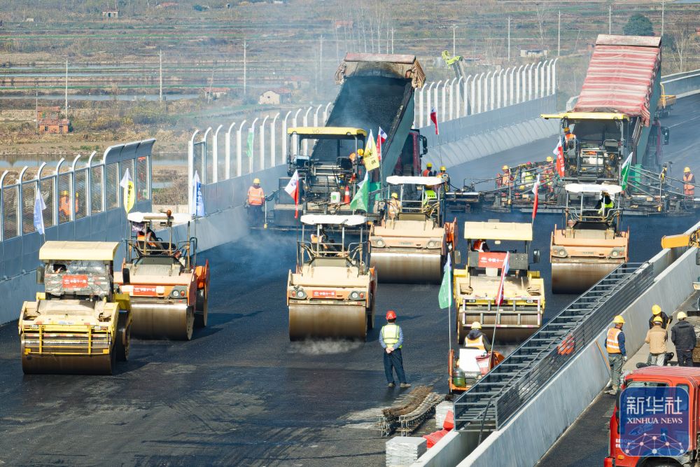 12月16日,随着最后一车沥青混合料摊铺碾压成型,由湖北交投投资建设、中铁十一局参建的新港高速双柳长江大桥及接线工程全线沥青摊铺完成,项目建设进入通车前的冲刺阶段。