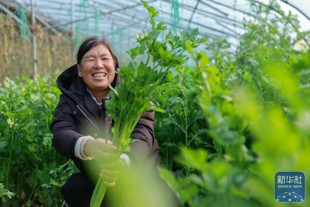 ↑ 12月16日,在山东省聊城市茌平区信发街道,农民在采收芹菜。新华社发(马红坤摄)