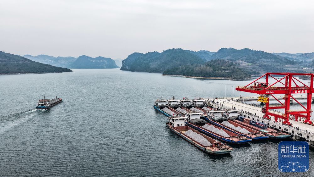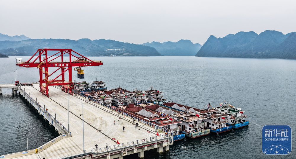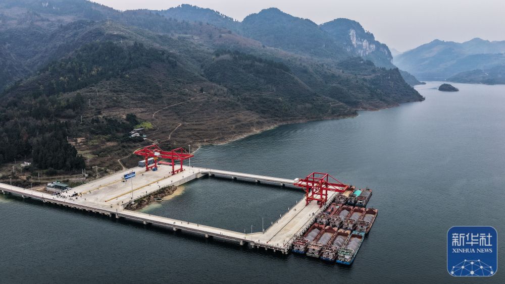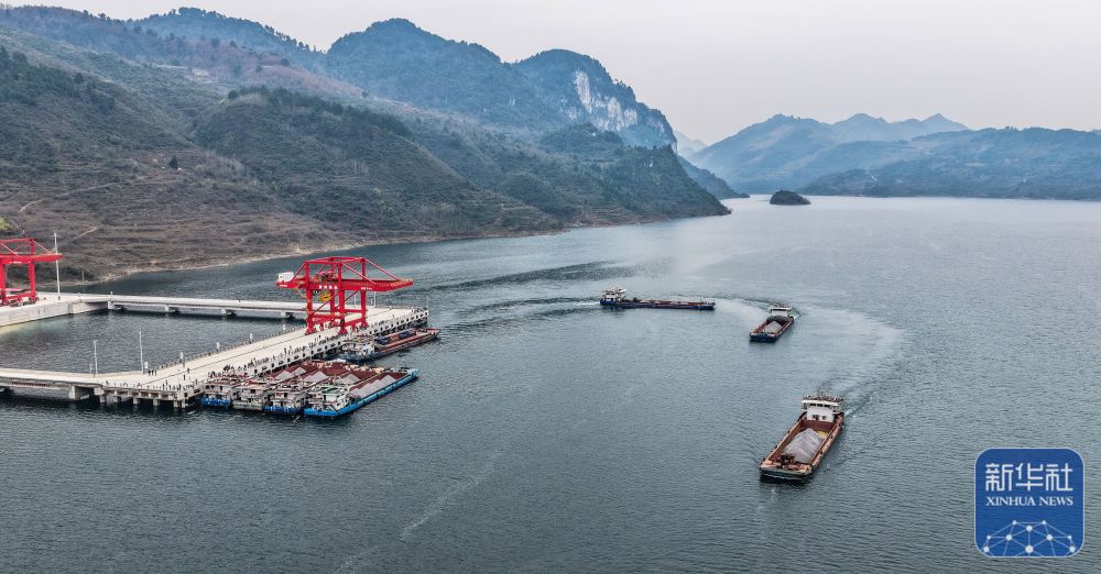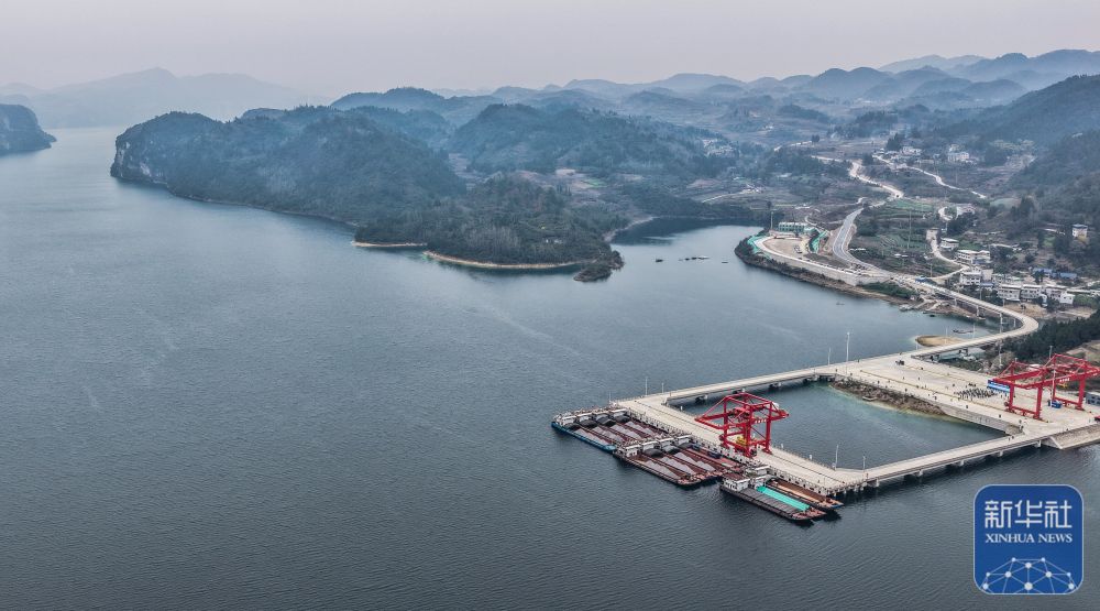 ↑ 12月16日,货船停靠在瓮安港云中港区(无人机照片)。