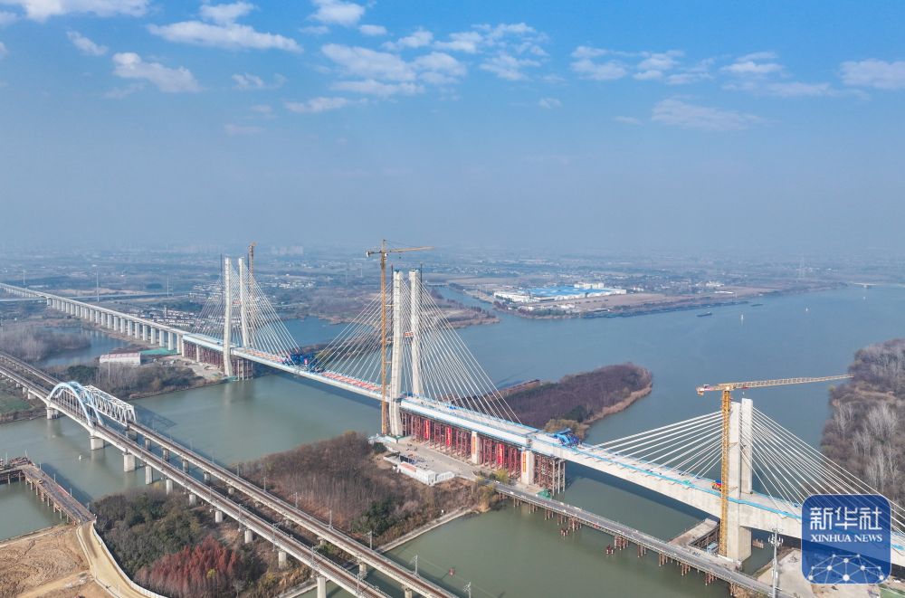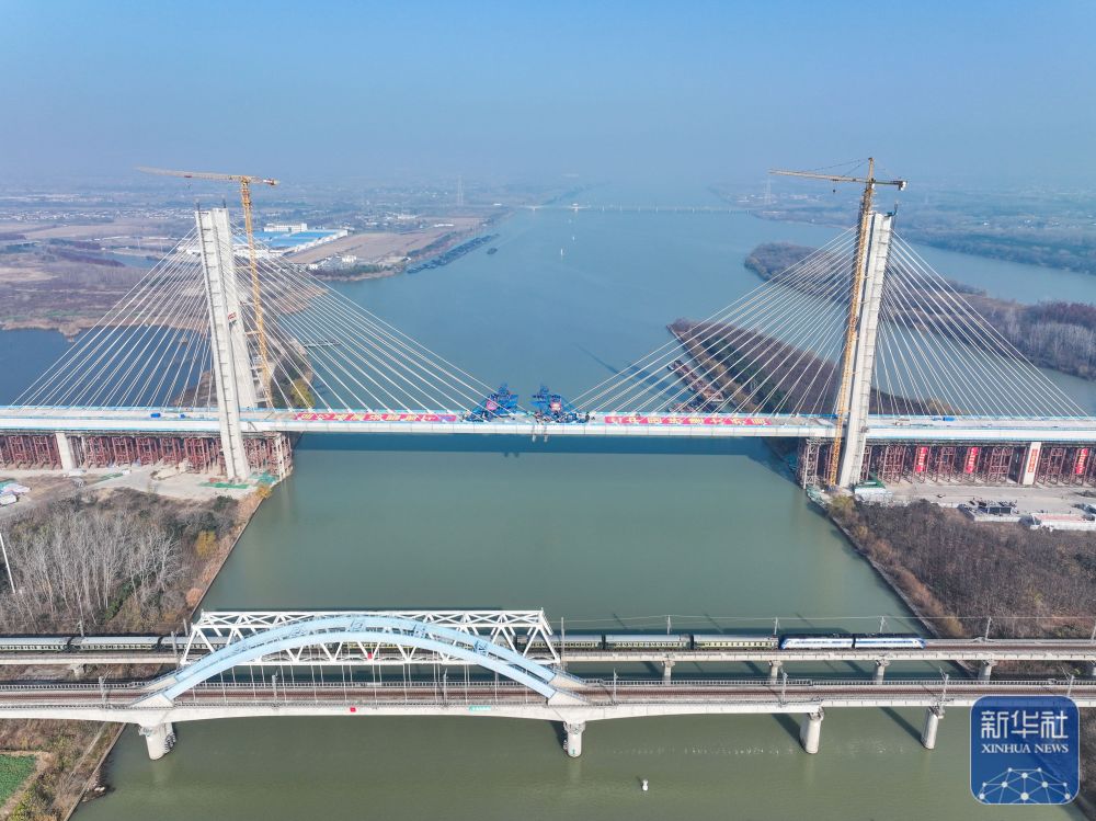 12月19日,由中国铁建大桥局承建的沪渝蓉高铁通泰扬特大桥跨京杭运河斜拉桥顺利合龙,通泰扬特大桥控制性工程取得突破性进展。本次合龙的跨京杭运河斜拉桥位于江苏扬州,全长564.3米,主跨300米,主塔高128米,桥面距离航道水位约30米。