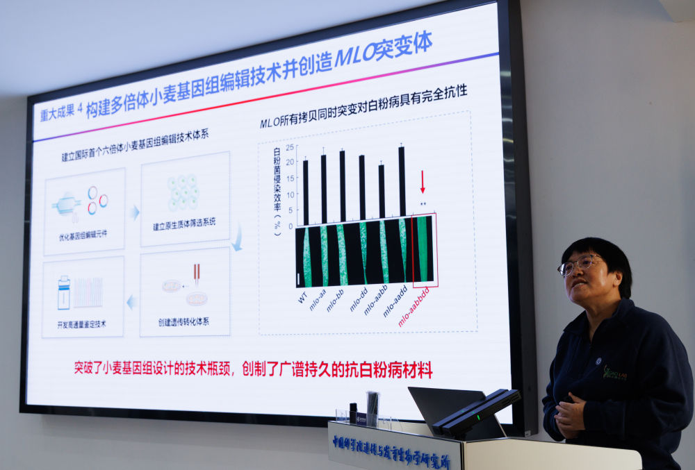 ↑12月22日,在中国科学院遗传与发育生物学研究所举行的发布会上,中国科学院遗传与发育生物学研究所研究员高彩霞在介绍研究成果。