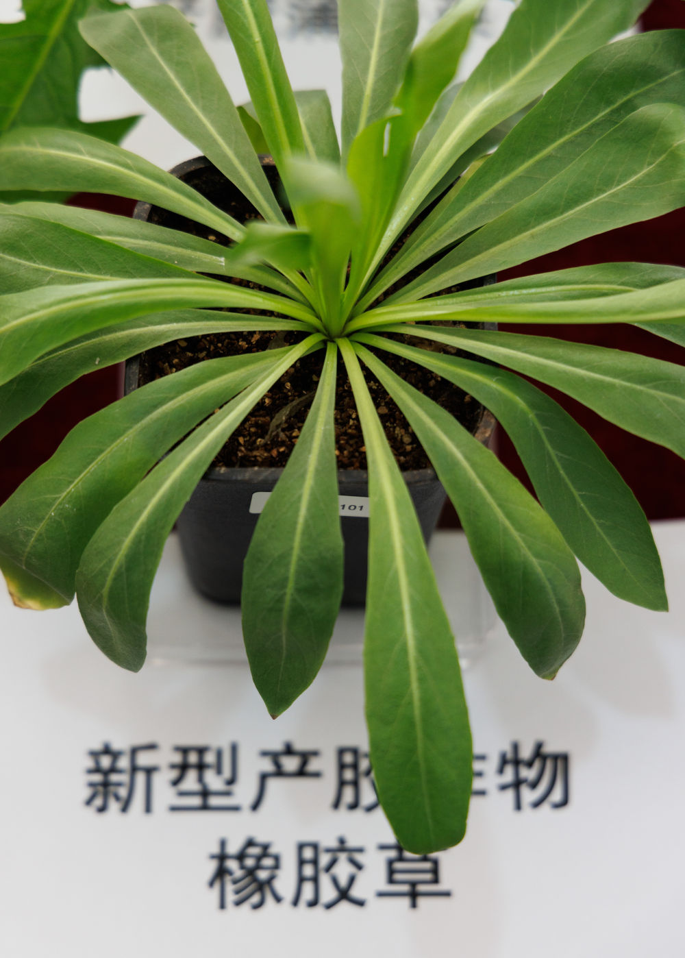↑这是发布会现场展示的新型产胶作物橡胶草(12月22日摄)。