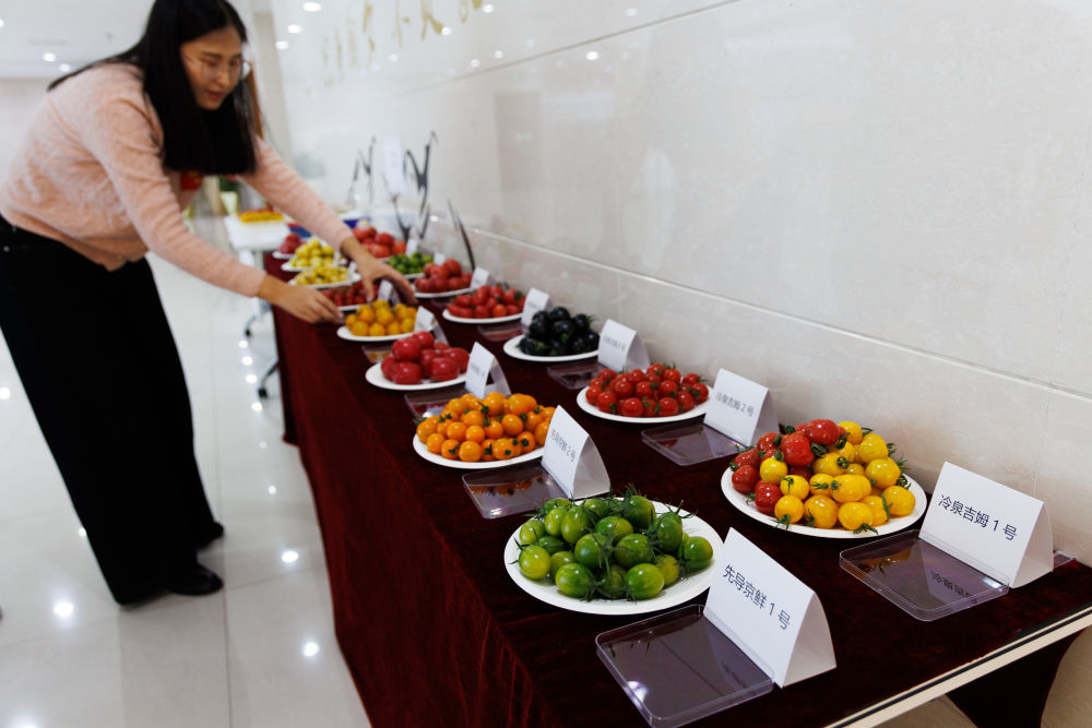 ↑这是发布会现场展示的系列番茄新品(12月22日摄)。