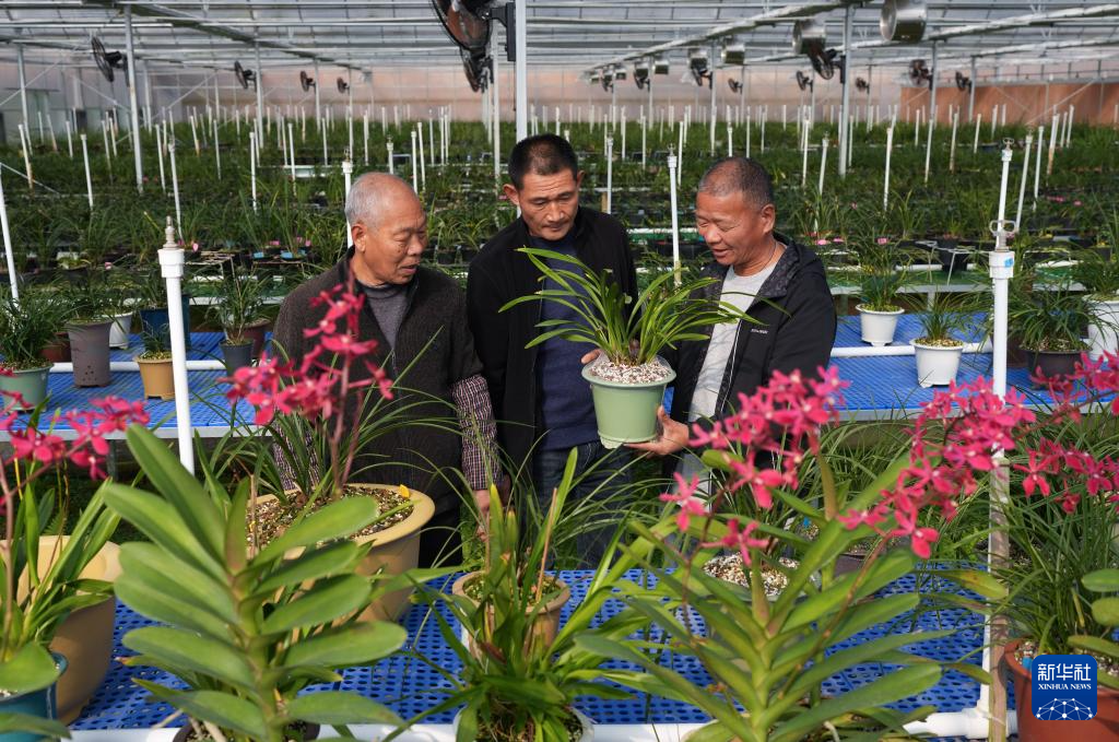 浙江省绍兴市上虞区长塘镇自2022年起依托特色兰花产业打造“竹乡兰苑”共富工坊,将兰花种植户集聚起来,形成集约化、规模化的产业发展平台。目前,“竹乡兰苑”已实现常态化运营,兰花存量达3万余盆,带动农户增收致富。新华社记者 翁忻旸 摄