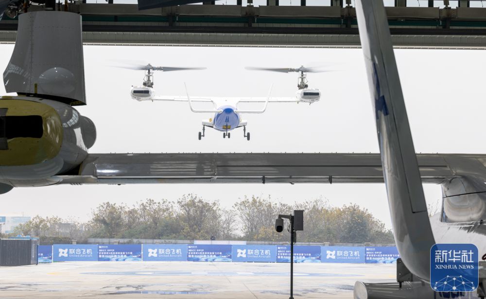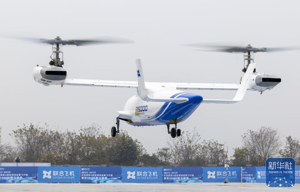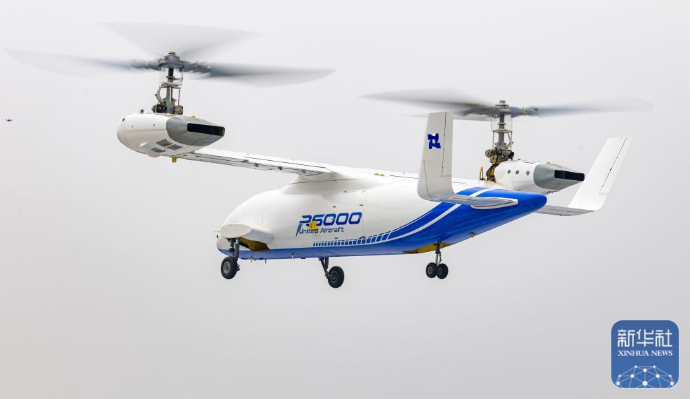 ↑12月28日,6吨级无人倾转旋翼飞行器“镧影R6000”在空中飞行。