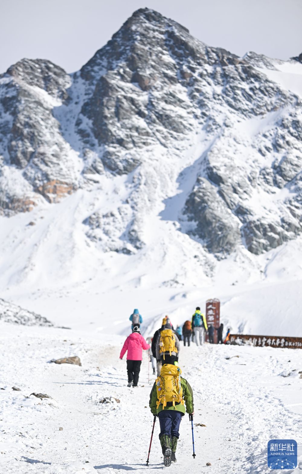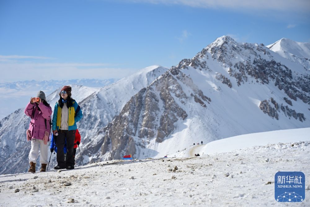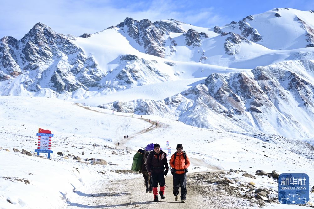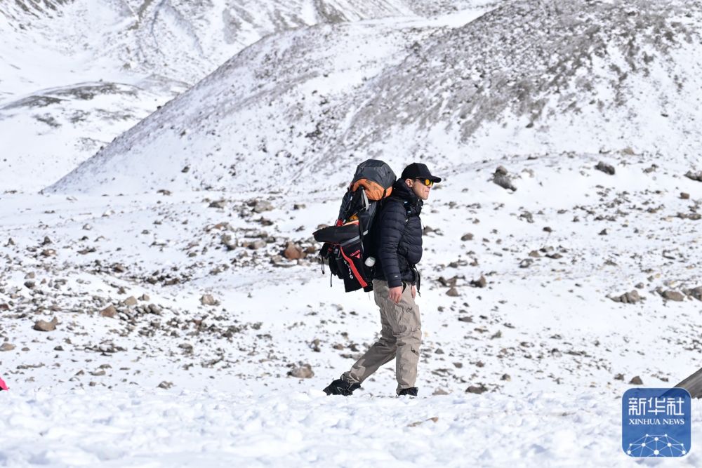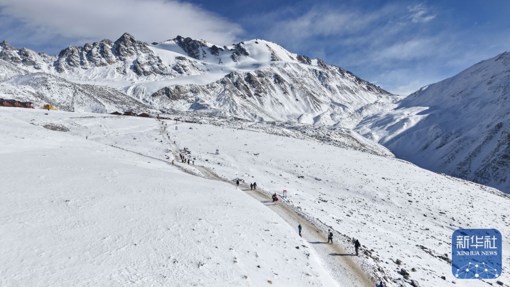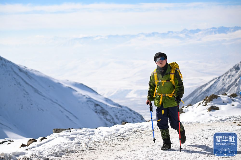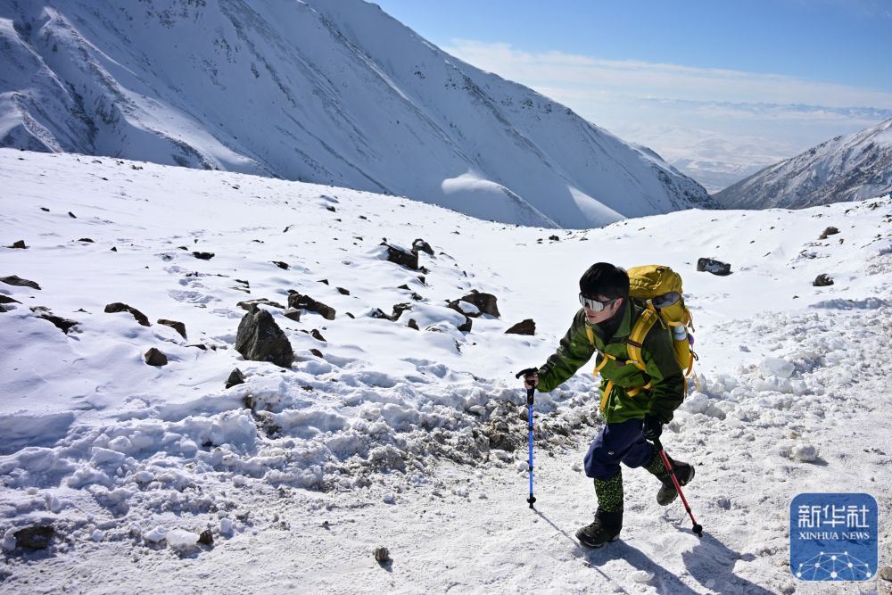 ↑ 登山爱好者在攀登岗什卡雪峰。 新华社记者 齐芷玥 摄