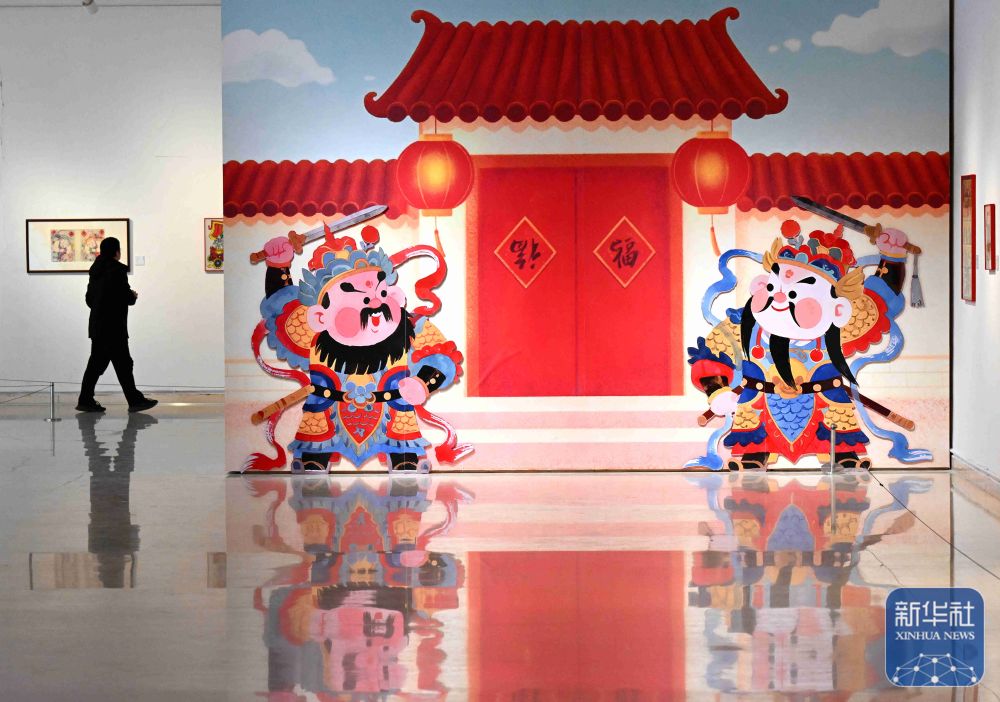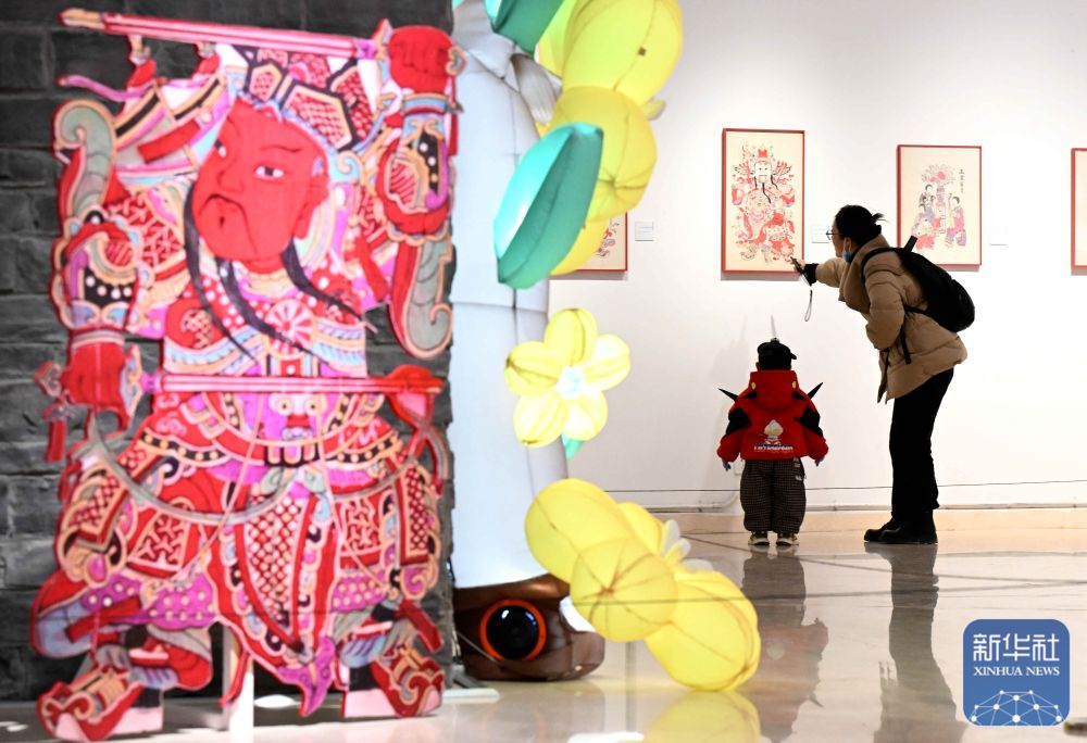 ↑ 1月2日,游客在河北省石家庄市美术馆参观新年主题年画展。新华社发(陈其保摄)