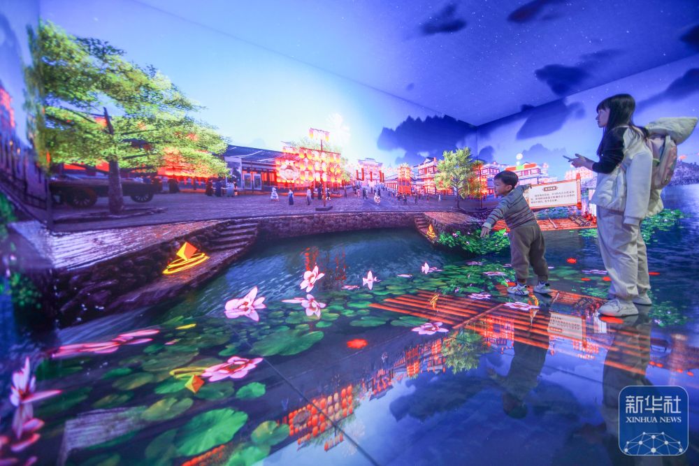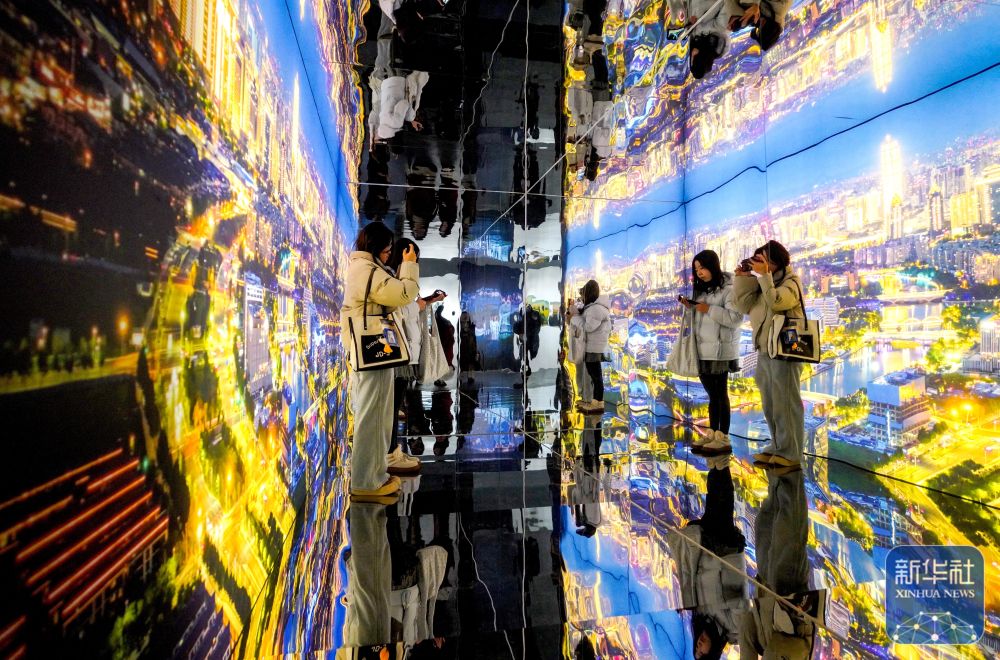 ↑ 1月2日,家长和小朋友在贵州省贵阳市贵州科技馆体验奇幻元宇宙。新华社发(袁福洪 摄)