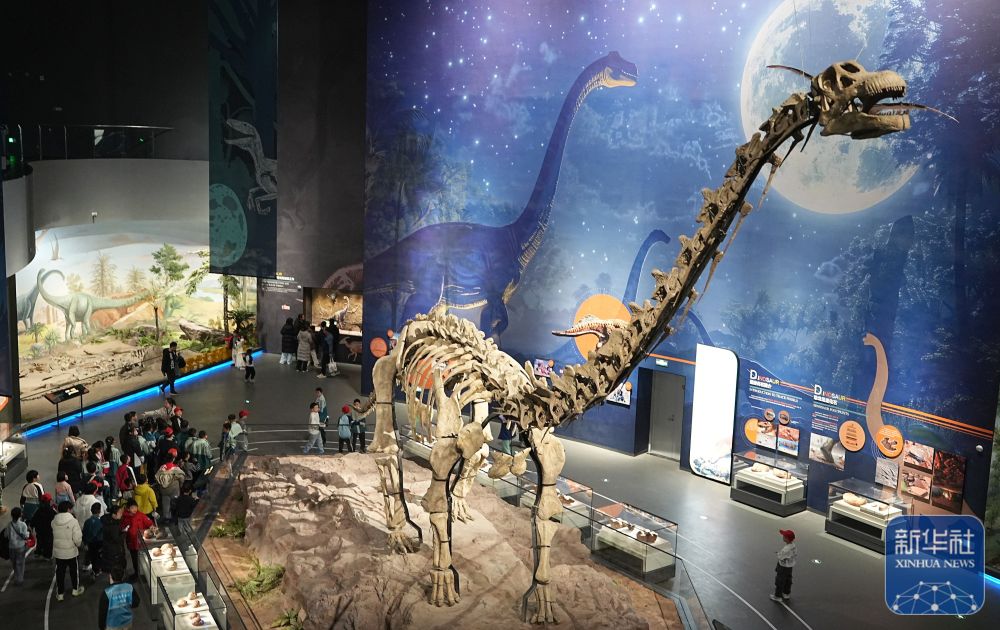 ↑ 1月2日,游客在河北地质大学博物馆参观恐龙化石。新华社发(闫志国摄)