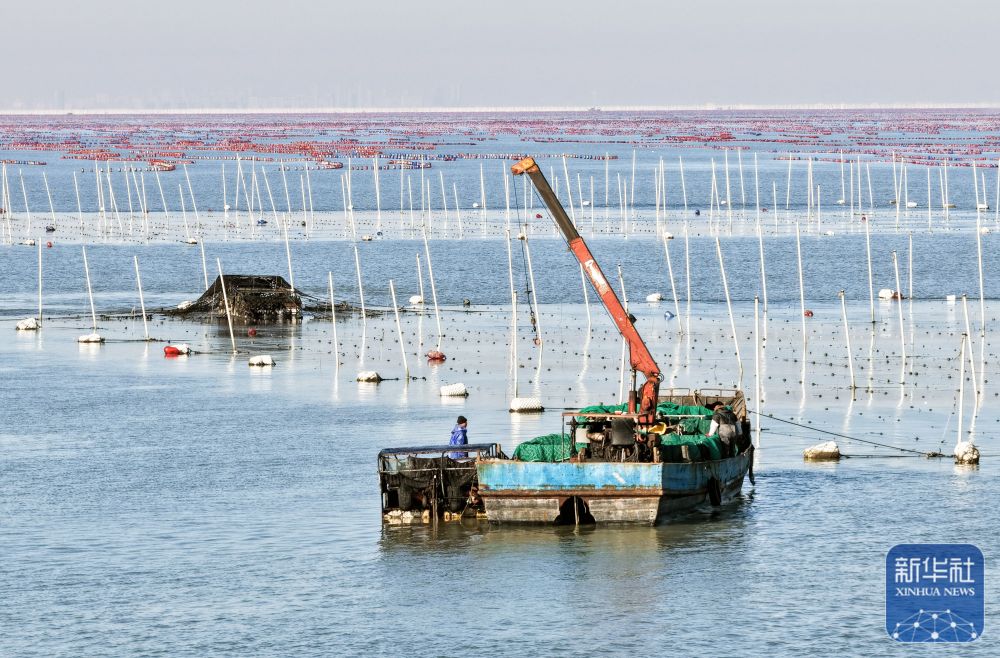 眼下,江苏连云港市海州湾渔场养殖区的头茬条斑紫菜迎来收获时节,“海上菜园”到处都是抢收紫菜的繁忙景象。