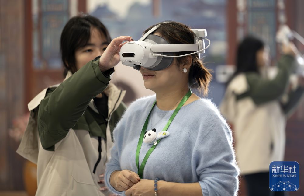 ↑ 1月17日,观众在福州熊猫世界体验VR设备。