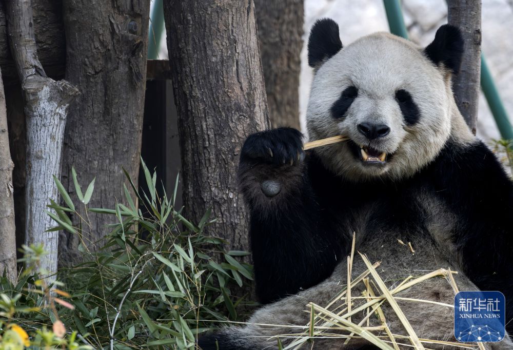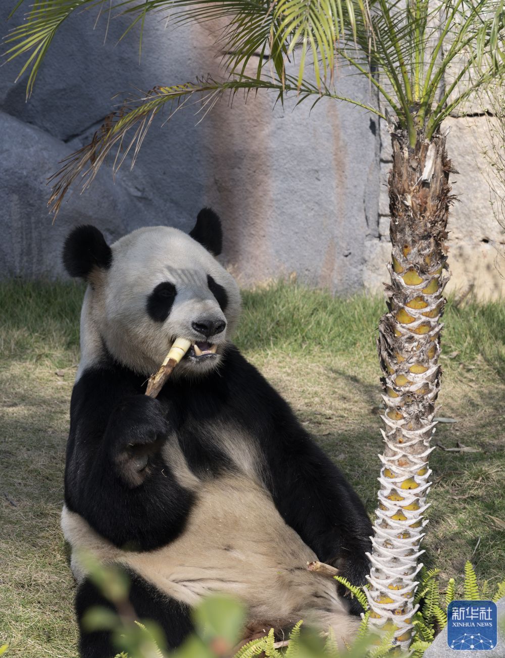 ↑ 1月17日,大熊猫“艾伦”在吃竹子。