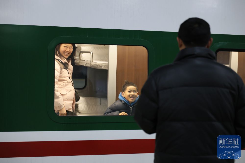 ↑ 1月19日,旅客在天津站隔窗送别。