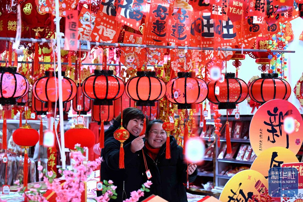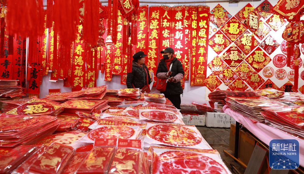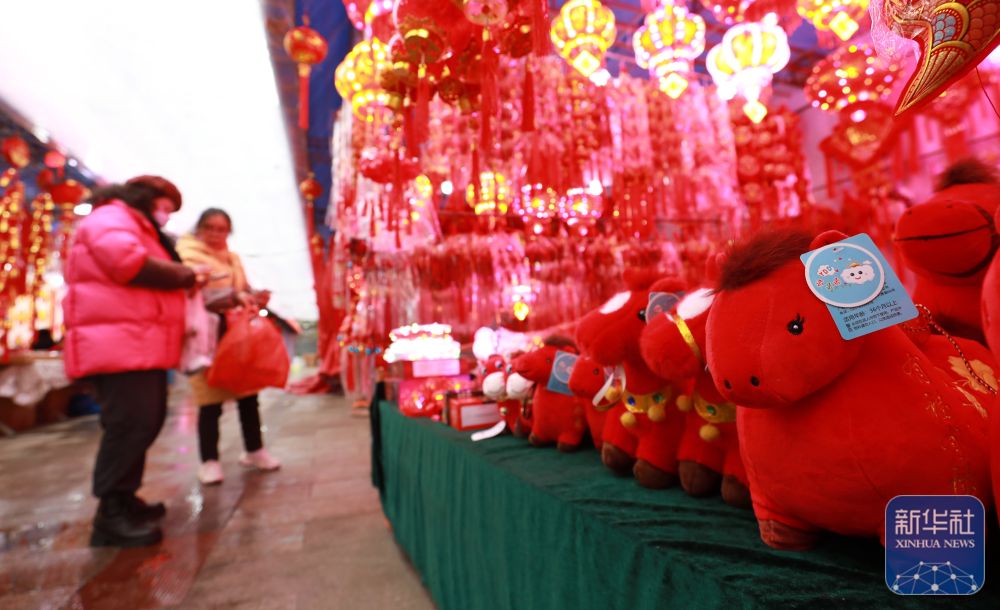 春节临近,各地年货市场年味渐浓,人们忙着选购春节饰品,迎接新春佳节。
