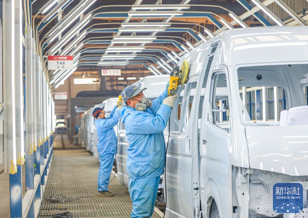 ↑1月29日,在江苏省江都高新技术产业开发区内,江苏九龙汽车制造有限公司工人在生产线上作业。新华社发(任飞摄)