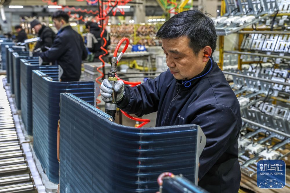 ↑1月29日,在江苏省南京江宁高新技术产业开发区,工人在格力电器(南京)有限公司生产线上忙碌。新华社发(杨素平摄)