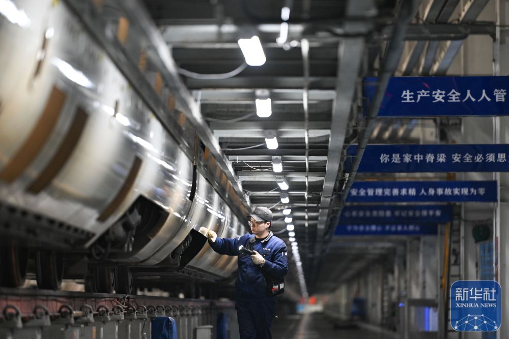 ↑1月29日,昆明车辆段昆明西客车技术整备所内,工作人员在进行春运整备作业。新华社发(杨紫轩 摄)