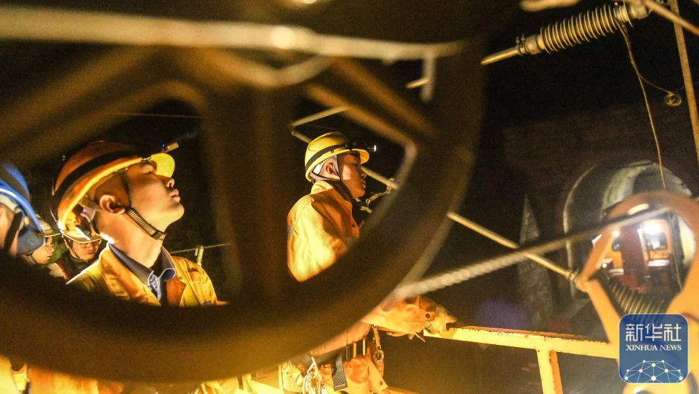 ↑1月29日,中国铁路南宁局集团有限公司接触网工在检查接触网腕臂装置与补偿滑轮的状态。新华社记者 张爱林 摄