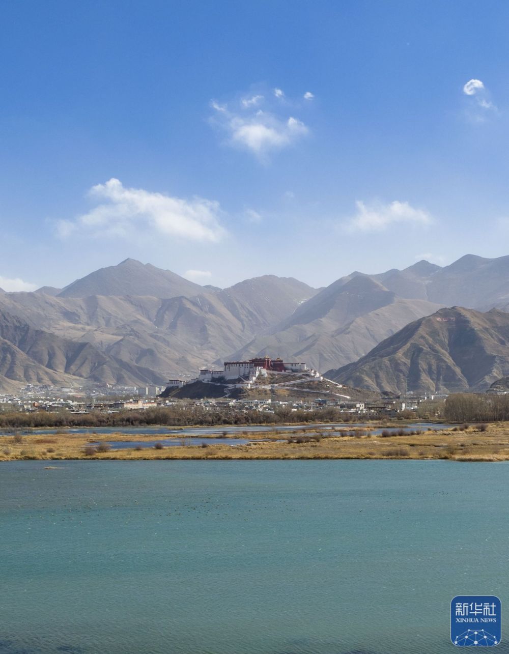 ↑ 2月2日拍摄的拉鲁湿地景色(无人机照片)。