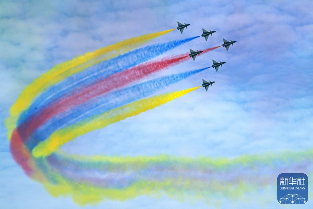 2月4日,中国空军八一飞行表演队在第十届新加坡航展上进行飞行表演。新华社发(邓智炜摄)