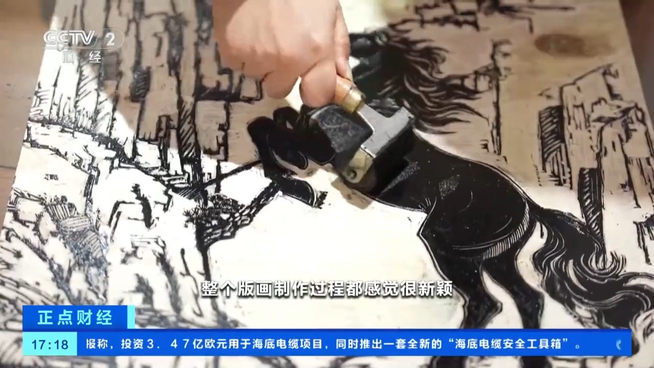 在安徽黄山的徽派版画文化体验馆内,非遗传承人薛寅正带着游客体验制作新年开发的马年创意版画,游客们以刻刀为笔,木板为纸,雕刻制版、滚墨、印画,“马上抱富”“马上有福”等创意版画受到了年轻人的追捧。