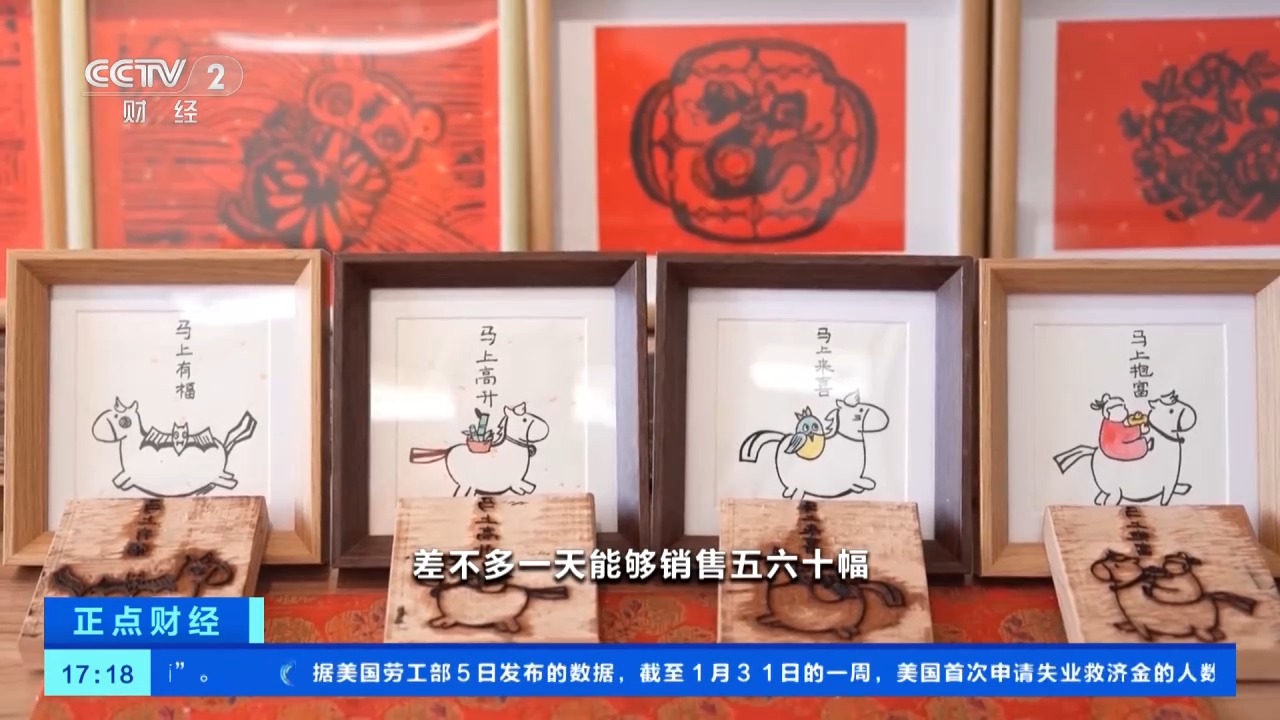 安徽黄山徽派版画市级非遗传承人薛寅:今年创作马年生肖小版画,差不多一天能销售五六十幅。
