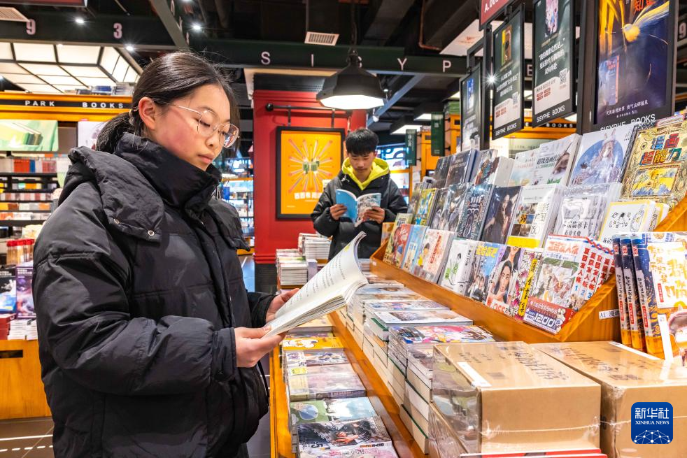 2月8日,学生在贵州省安顺市西秀区一家书店阅读。新华社发(陈熙 摄)