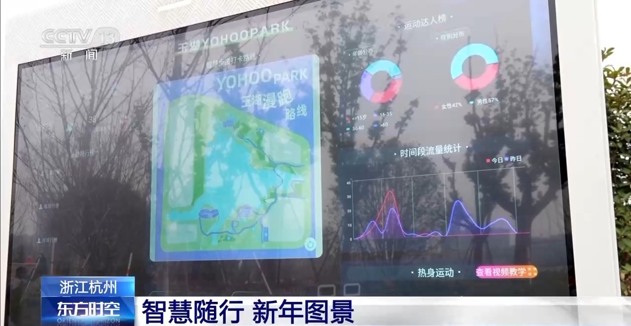 大家知道吗?对着屏幕刷个脸,个人运动报告就生成了,能看到今天跑得多快、多远,就连消耗的卡路里都算得一清二楚。公园里免费Wi-Fi全覆盖,座椅还能随时给手机充电,这才是真正的能量补给站。