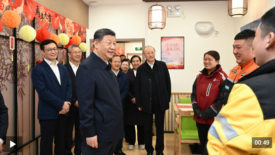新街口父母食堂里,见到在这里休息的3名快递小哥,总书记关切询问他们跑快递多久了、工作累不累、收入怎么样、春节回不回家,为他们付出的辛劳和作出的贡献点赞。