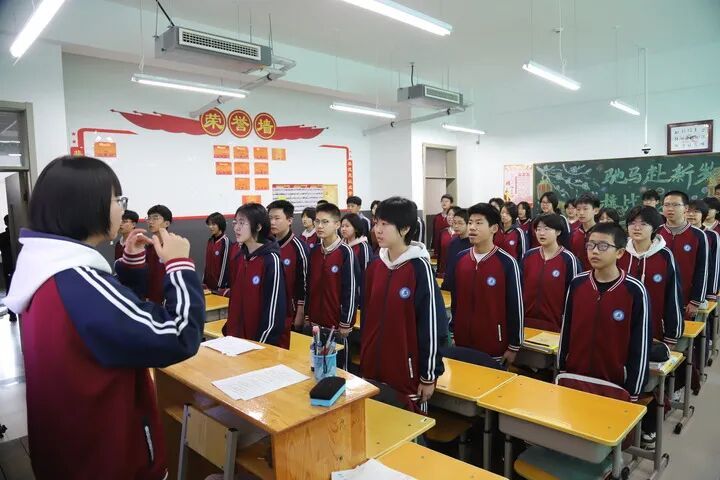 河北阜平北城中学九年级学生开展“课前一支歌”活动。班静怡摄