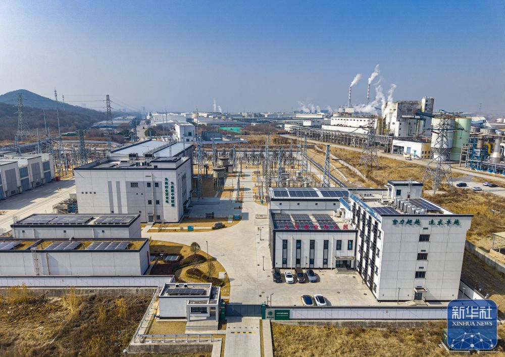 ↑ 2月13日拍摄的运行中的江苏镇江±200千伏圌山换流站(无人机照片)。
