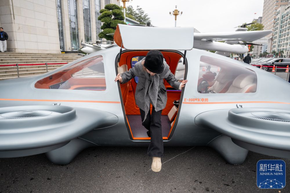 ↑ 2月24日,参观者从一款eVTOL航空器舱内走出。