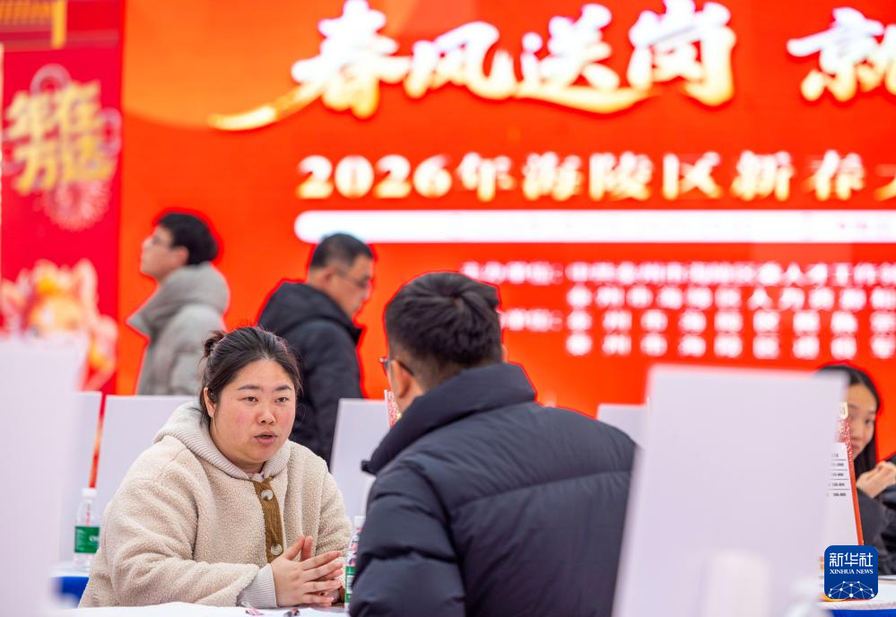 2月24日,在江苏省泰州市海陵区举办的2026年“春风送岗 就在海陵”专场招聘会上,求职者在活动现场咨询。新华社发(汤德宏 摄)