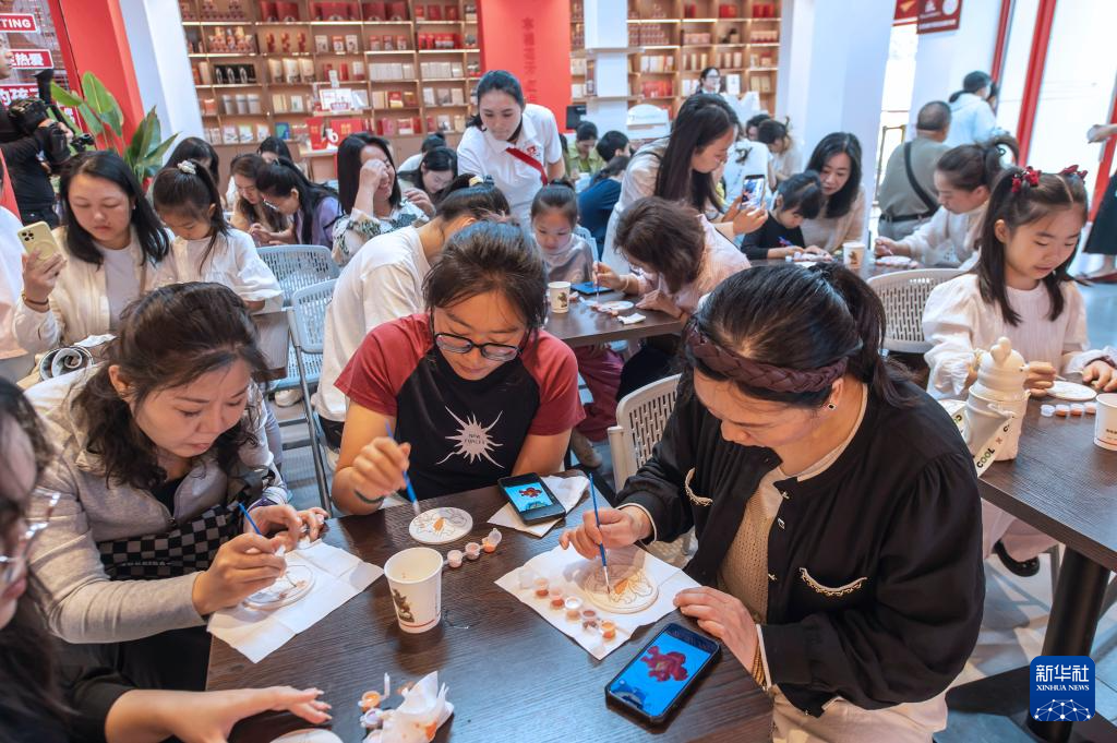 3月8日,位于海南省琼海市的红色娘子军纪念园举办“琼花传匠心 经典绘新篇”妇女节主题文化活动。这是游客在创作釉彩作品。新华社发(蒙钟德 摄)