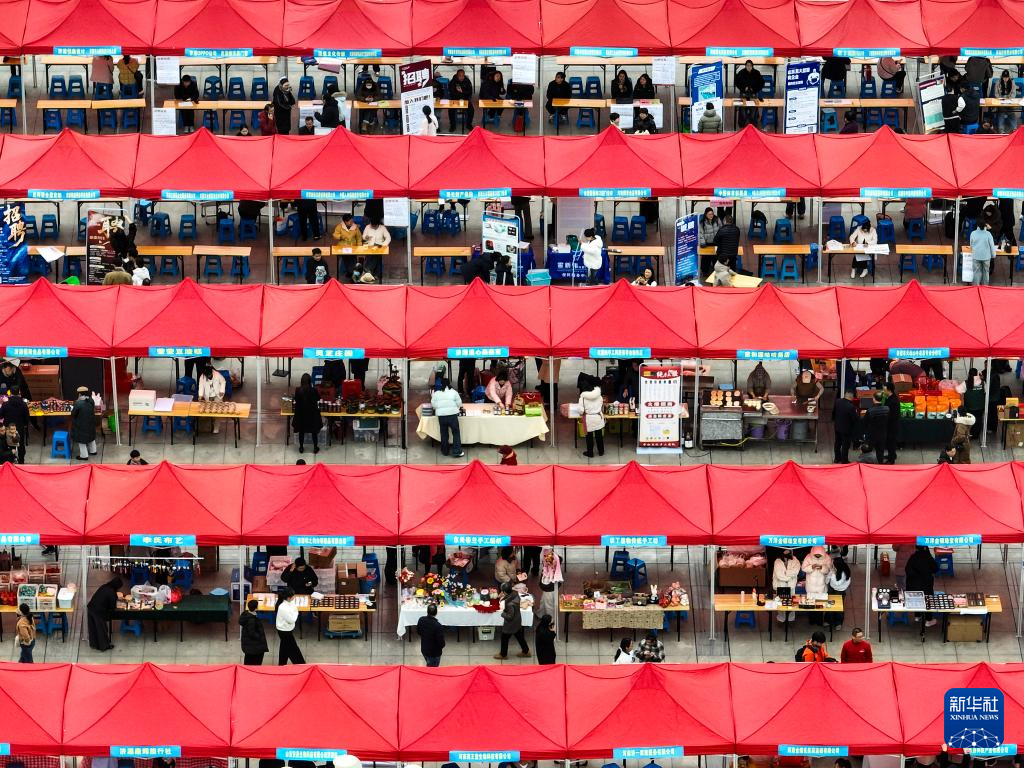 这是3月8日拍摄的河南省济源市女性专场招聘会现场(无人机照片)。新华社发(苗秋闹 摄)
