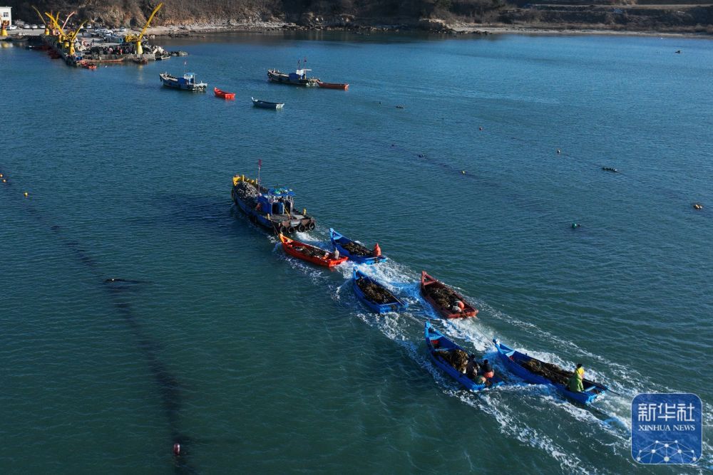 眼下,在我国海带主产区山东省荣成市,海洋牧场海带养殖区一派繁忙景象。养殖户对近岸养殖区达到成熟标准的海带分批收割,为后期收割的海带留出生长空间,以便提高海带产量和质量。