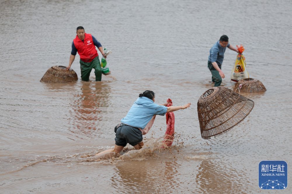 3月14日,当地村民和游客参加摸鱼体验活动。