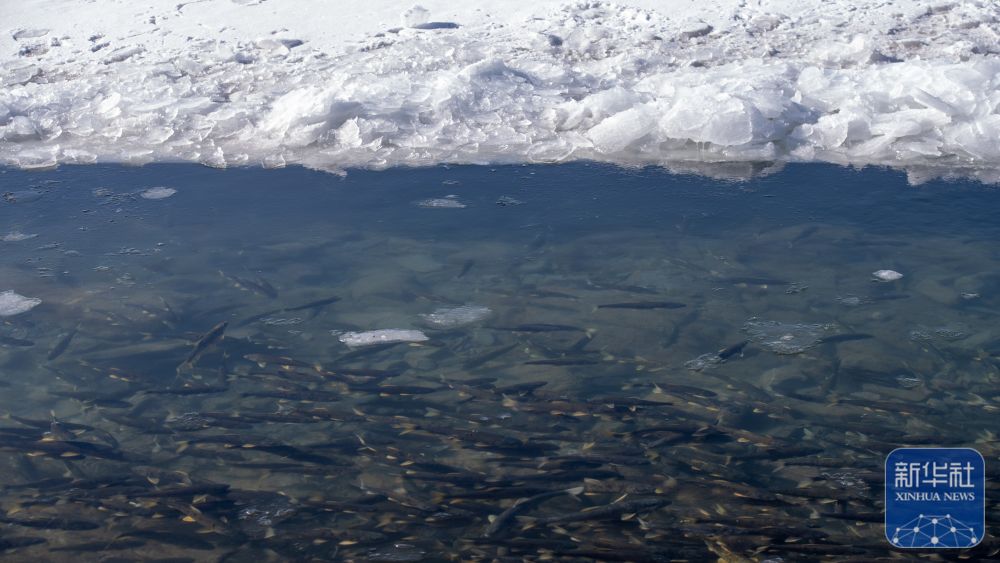 ↑ 这是3月19日拍摄的青海湖内的湟鱼。新华社发 (潘彬彬 摄)