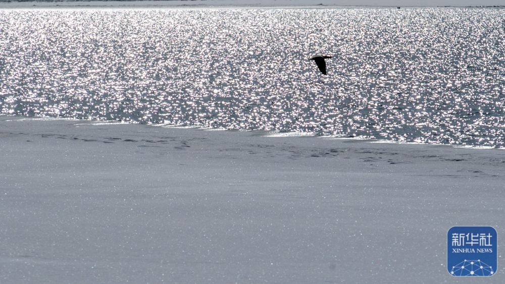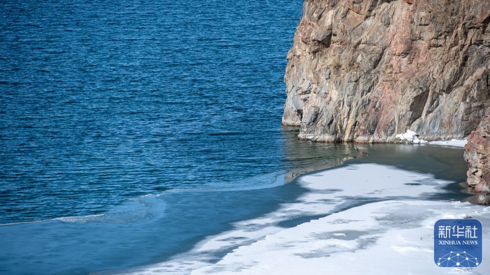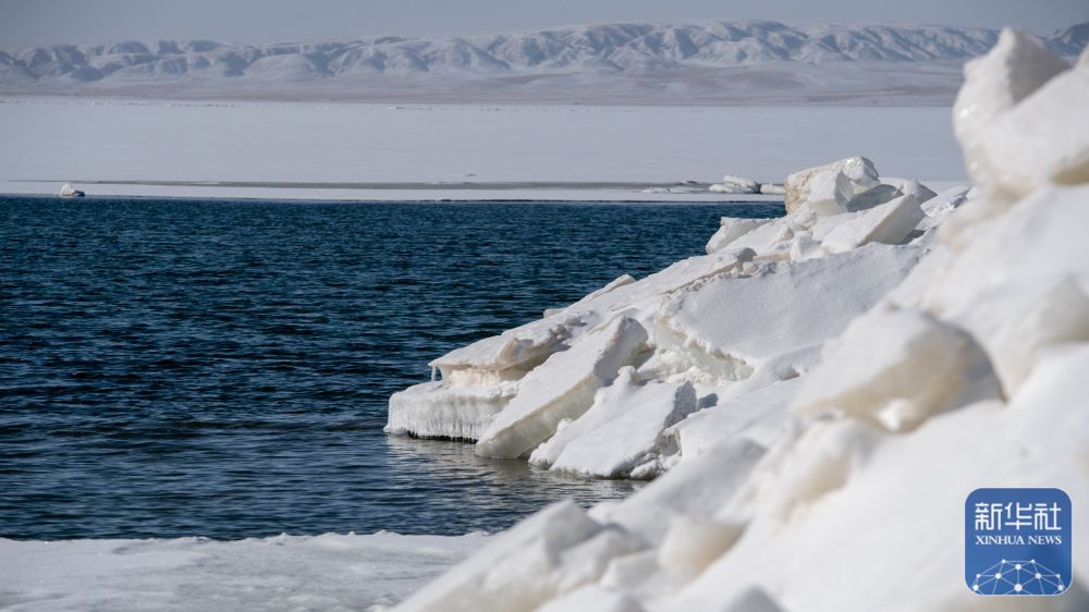 ↑ 这是3月19日拍摄的青海湖一角。新华社发 (潘彬彬 摄)