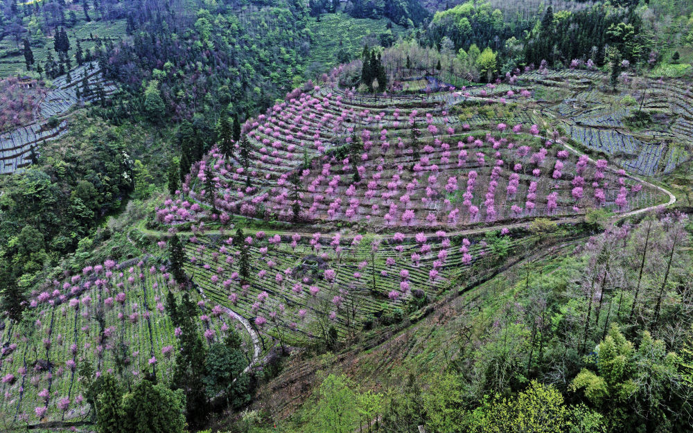 这是3月17日在四川省峨眉山市高桥镇拍摄的宏村山岗。新华社发(孔胜摄)